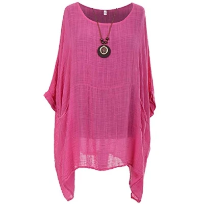 Storm Island Ladies Italian Quirky Cotton Top Womens Lagenlook Plain Summer Tunic Dress (Fuchsia, 26 28 UK)