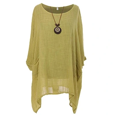 Loose-fit Cotton Blouse, Super high quality, Fashion design.Season:Spring, Summer and autumn Great to pair with jeans, demin shorts, trousers or skirts as women's essentials Casual Style Top with Necklace too Demonstrate your unique grace Length: Center Back to Hem 30 Inches