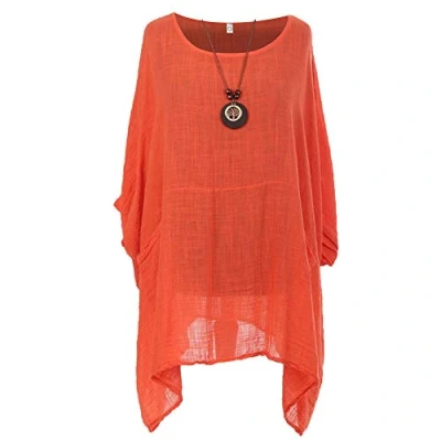 Loose-fit Cotton Blouse, Super high quality, Fashion design.Season:Spring, Summer and autumn Great to pair with jeans, demin shorts, trousers or skirts as women's essentials Casual Style Top with Necklace too Demonstrate your unique grace Length: Center Back to Hem 30 Inches