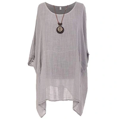 Storm Island Ladies Italian Quirky Cotton Top Womens Lagenlook Plain Summer Tunic Dress (Silver, 26 28 UK)