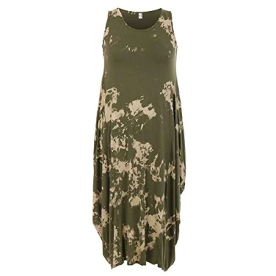 Storm Island Ladies Italian Sleeveless Dress Tie Dye Print Womens Stretchy Maxi Long Top Plus (Khaki, 16 18 UK)