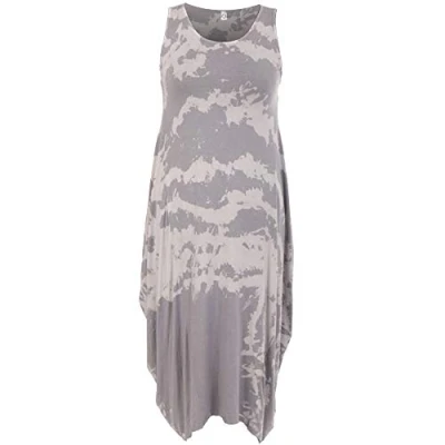 Storm Island Ladies Italian Sleeveless Dress Tie Dye Print Womens Stretchy Maxi Long Top Plus (Silver, 20 22 UK)