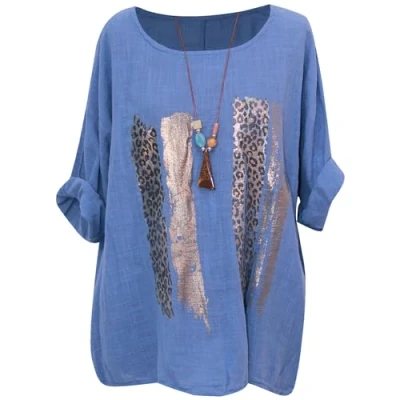 Storm Island® Ladies Italian Top Women Animal Foil Print Tunic Summer Dress Printed Casual Round Neck Plus Size T Shirt Girls Blouse Party With Necklace UK (12 20) Denim
