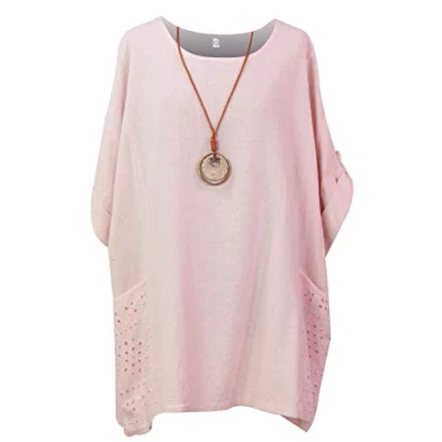 Storm Island Ladies Plain Cotton Top Womens Lagenlook Tunic Baggy Dress Shirt Lace Pockets SI099 (Nude, One Size UK Fit 14 22)