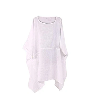 Storm Island Ladies Plain Top Womens Lagenlook Plus Size Tunic Cotton Dress Shirt with Pocket SI098 (White, One UK Fit 22 38)