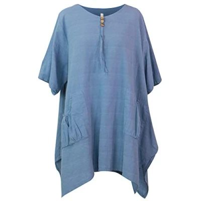 Storm Island Ladies Plain Tunic Top Lagenlook Womens Baggy Casual Dress Cotton Shirt with Pockets SI097 (Denim, ONE Size UK FIT 12 18)