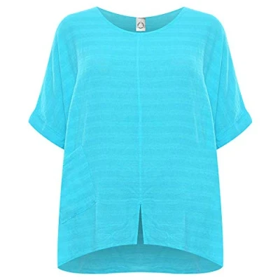 Storm Island Ladies Plus Linen Top Womens Baggy Oversized Short Sleeve Front Pocket (Turquoise, 24 26)