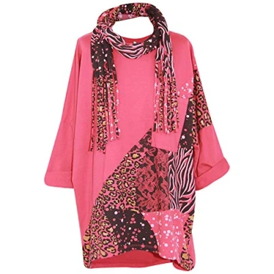 Storm Island Ladies Scarf top Italian Women Lagenlook Leopard Printed Winter Stylish Tunic (Coral, One Size Suitable for 16 26 UK)
