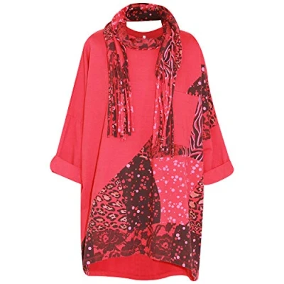 Storm Island Ladies Scarf top Italian Women Lagenlook Leopard Printed Winter Stylish Tunic (Red, One Size Suitable for 16 26 UK)