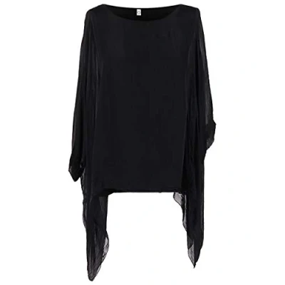 Storm Island Plain Italian Ladies Top Womens Batwing Silk Lagenlook Tunic Dress Plus Size (Black, One (UK Fit 14 20))
