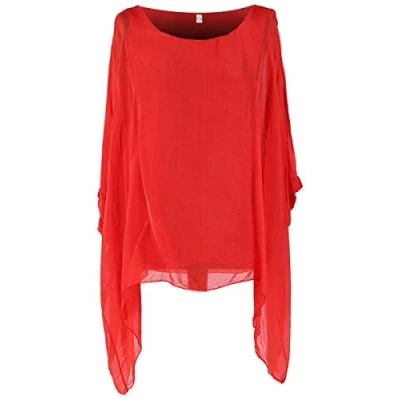 Storm Island Plain Italian Ladies Top Womens Batwing Silk Lagenlook Tunic Dress Plus Size (RED, One (UK Fit 14 20))