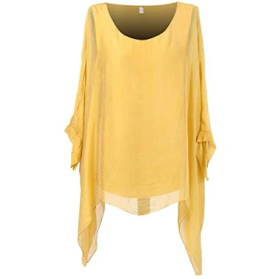 Storm Island Plain Ladies Italian Top Lagenlook Women Silk Tunic Dress Shirt Batwing Sleeves SI087 (Mustard, One Size (UK Fit 14 20))