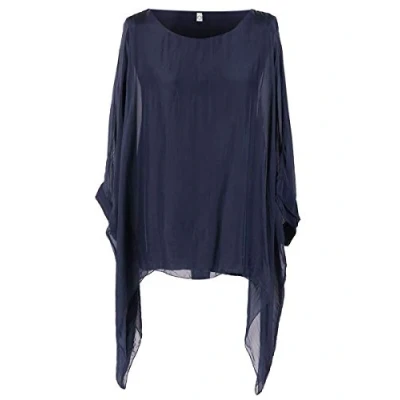 Storm Island Plain Ladies Italian Top Lagenlook Women Silk Tunic Dress Shirt Batwing Sleeves SI087 (Navy, One Size (UK Fit 14 20))