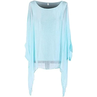 Storm Island Plain Ladies Italian Top Lagenlook Women Silk Tunic Dress Shirt Batwing Sleeves SI087 (Turquoise, One Size (UK Fit 14 20))