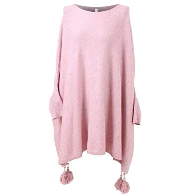 Storm Island Plain Ladies Poncho Plus Size Batwing Sleeves Tassels Knitted Winter Wear Tunic (Pink, One (UK Fit 18 32))