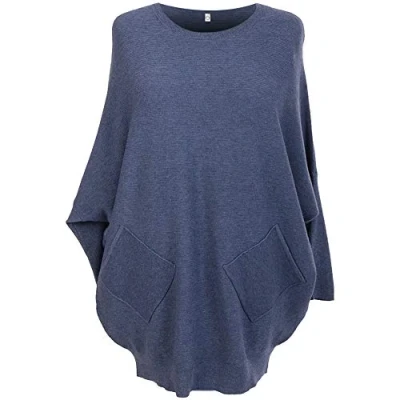 Storm Island SI002 Italian Ladies Batwing Back Lace Lagenlook Jumper Women Knitted Pockets Top (Denim, UK 20 22)