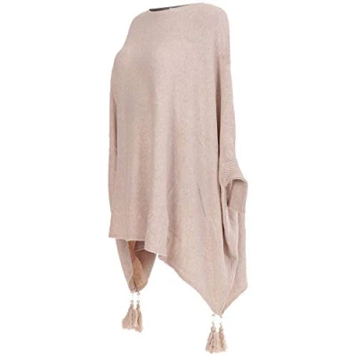 Storm Island SI007 Womens Italian Boxy Batwing Tassels Poncho Ladies Knitted Cape Plus Size (Beige, One UK 16 34)
