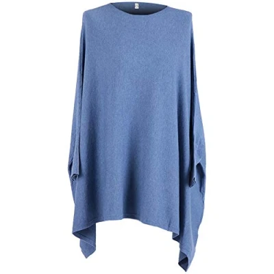 Storm Island SI021 Ladies Italian Ribbed Trim Lagenlook Top Womens Knited Draped Boat Neck Poncho (Denim, ONE Size 14 22 UK)