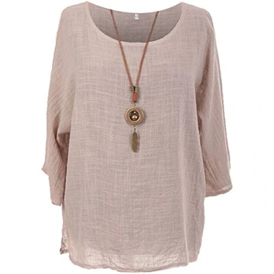 COTTON SUMMER TOP WITH NECKLACE: This AUTHENTIC "Made in Italy" premium quality soft and lightweight fabric (100% Cotton) Plain Colorful top with "NECKLACE" gives you a very stylish and smart look this summer. Its cool solid colors gives a chic appearance. Round neck with 3/4 sleeves loose fitting which is very comfortable to wear in summer and spring seasons. This Casual dress for ladies gives a very stylish look and a relaxed feeling. A very nice Casual Summer dress for you. SIZE GUIDE: It is a loose fit. Length middle: 28 inches, Pit to Pit 26 inches. Top is comes with Necklace LADIES CASUAL TOP: Summer Casual Tunic Shirt for women nice to pair with jeans, denim shorts, skirts, shorts, leggings, skirts, work pants for your own style. Women's summer sleeveless blouses perfect for Casual Wear, Cocktail, festive, wedding, Work, Party, Club, Office, School, Daily wear, travel, vacation, party, and so on ONE SIZE: If you are ONE/PLUS size, as we are one of the best Amazon sellers in providing variety of styles for ONE and Plus Sized exceptional & smart working ladies. This Amazing Italian One size Top is suitable for all occasions, perfect for everyday wear. It can be worn at home, outdoors or other activities in spring and summer seasons. WASH CARE: You can wash this Plain Tunic Top by hand or by machine. Cool water, gentle laundry detergent, and air drying are the best ways to prevent shrinking, wrinkling, and fading.