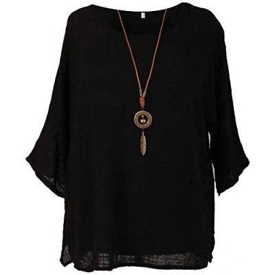 COTTON SUMMER TOP WITH NECKLACE: This AUTHENTIC "Made in Italy" premium quality soft and lightweight fabric (100% Cotton) Plain Colorful top with "NECKLACE" gives you a very stylish and smart look this summer. Its cool solid colors gives a chic appearance. Round neck with 3/4 sleeves loose fitting which is very comfortable to wear in summer and spring seasons. This Casual dress for ladies gives a very stylish look and a relaxed feeling. A very nice Casual Summer dress for you. SIZE GUIDE: It is a loose fit. Length middle: 28 inches, Pit to Pit 26 inches. Top is comes with Necklace LADIES CASUAL TOP: Summer Casual Tunic Shirt for women nice to pair with jeans, denim shorts, skirts, shorts, leggings, skirts, work pants for your own style. Women's summer sleeveless blouses perfect for Casual Wear, Cocktail, festive, wedding, Work, Party, Club, Office, School, Daily wear, travel, vacation, party, and so on ONE SIZE: If you are ONE/PLUS size, as we are one of the best Amazon sellers in providing variety of styles for ONE and Plus Sized exceptional & smart working ladies. This Amazing Italian One size Top is suitable for all occasions, perfect for everyday wear. It can be worn at home, outdoors or other activities in spring and summer seasons. WASH CARE: You can wash this Plain Tunic Top by hand or by machine. Cool water, gentle laundry detergent, and air drying are the best ways to prevent shrinking, wrinkling, and fading.