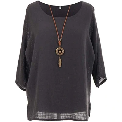 Storm Island Stylist Italian Ladies Cotton Top Necklace Women Lagenlook Tunic Dress Shirt (Charcoal, 12 14 UK)