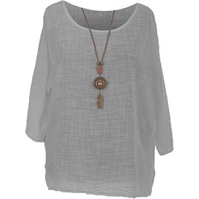 Storm Island Stylist Italian Ladies Cotton Top Necklace Women Lagenlook Tunic Dress Shirt (Grey, UK 16 18)