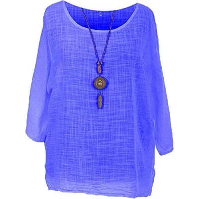 COTTON SUMMER TOP WITH NECKLACE: This AUTHENTIC "Made in Italy" premium quality soft and lightweight fabric (100% Cotton) Plain Colorful top with "NECKLACE" gives you a very stylish and smart look this summer. Its cool solid colors gives a chic appearance. Round neck with 3/4 sleeves loose fitting which is very comfortable to wear in summer and spring seasons. This Casual dress for ladies gives a very stylish look and a relaxed feeling. A very nice Casual Summer dress for you. SIZE GUIDE: It is a loose fit. Length middle: 28 inches, Pit to Pit 26 inches. Top is comes with Necklace LADIES CASUAL TOP: Summer Casual Tunic Shirt for women nice to pair with jeans, denim shorts, skirts, shorts, leggings, skirts, work pants for your own style. Women's summer sleeveless blouses perfect for Casual Wear, Cocktail, festive, wedding, Work, Party, Club, Office, School, Daily wear, travel, vacation, party, and so on ONE SIZE: If you are ONE/PLUS size, as we are one of the best Amazon sellers in providing variety of styles for ONE and Plus Sized exceptional & smart working ladies. This Amazing Italian One size Top is suitable for all occasions, perfect for everyday wear. It can be worn at home, outdoors or other activities in spring and summer seasons. WASH CARE: You can wash this Plain Tunic Top by hand or by machine. Cool water, gentle laundry detergent, and air drying are the best ways to prevent shrinking, wrinkling, and fading.