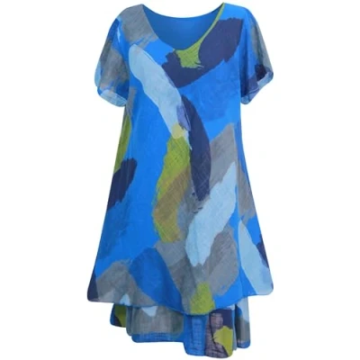 Storm Island® Women Casual Loose Dresses 2 Layered Long Swing Dress Ladies Short Sleeves Brush Stroke Smocked Summer Maxi Girls Party Holiday Beach Sundress For UK One Size 10 16