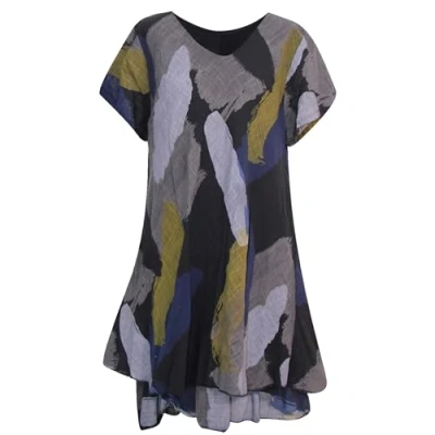 Storm Island® Women Casual Loose Dresses 2 Layered Long Swing Dress Ladies Short Sleeves Brush Stroke Smocked Summer Maxi Girls Party Holiday Beach Sundress for UK One Size 10 16 Black