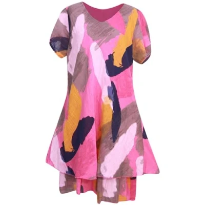Storm Island® Women Casual Loose Dresses 2 Layered Long Swing Dress Ladies Short Sleeves Brush Stroke Smocked Summer Maxi Girls Party Holiday Beach Sundress for UK One Size 10 16 Fuchsia
