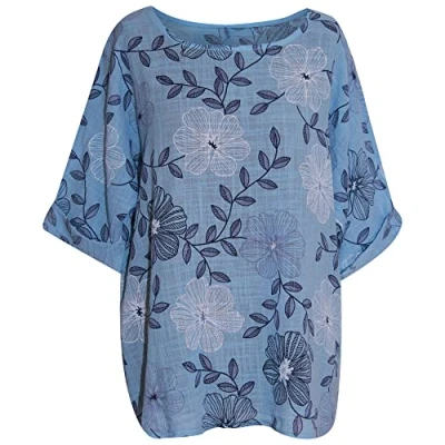 Storm Island Women Crop top Ladies Floral Italian Long Sleeve Casual wear Shirt Size 10 18 UK (One fit for UK, Sky Blue)