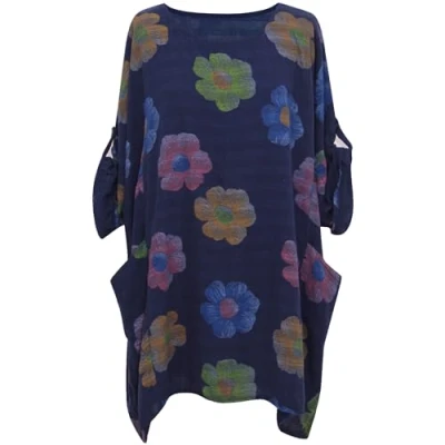 Storm Island® Women Italian Top Floral Print Cotton Summer Dress Tunic Plus Size for Round Neck Pullover Shirt Girls UK 12 22 Navy