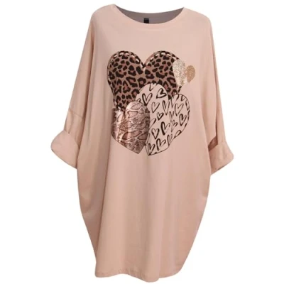 SUMMER SHIRT: This summer upgrade your closet with our Storm Island AUTHENTIC "Made in Italy" premium quality 100% COTTON fabric animal heart print top that gives you a very stylish and smart look. Shinny heart foil embossed print summer t-shirt makes your season more vibrant and colorful. Tunic Top has a round neck short sleeves pullover shirt that can be paired up with jeans, tights, skirts, shorts, leggings, etc. Ladies Top can be worn as casual wear, office, holidays, shopping etc SIZE GUIDE: It is a loose-fit top. PIT TO PIT 30 INCHES = 77 CM: LENGTH CENTER BACK TO HEM 31 INCHES = 79 CM. Suitable for UK Size 14-24. Available in Colors Black, Beige, Khaki, Grey, Navy, Denim and White MADE IN ITALY: Italy is famous for its cool tops & dresses. We are AUTHENTIC retailer of Italian wear and you can see that we are also part of Amazon Made in Italy storefront. We only buy items that are manufactured in Ital WASH CARE: You can wash Cotton garments and textiles by hand or by machine. Cool water, gentle laundry detergent, and air drying are the best ways to prevent shrinking, wrinkling, and fading. ONE SIZE: If you are ONE/PLUS size, as we are one of the best Amazon sellers in providing variety of styles for ONE and Plus Sized exceptional & smart working ladies. This Amazing Italian One size Top is suitable for all occasions, perfect for everyday wear. It can be worn at home, outdoors or other activities in spring and summer seasons.