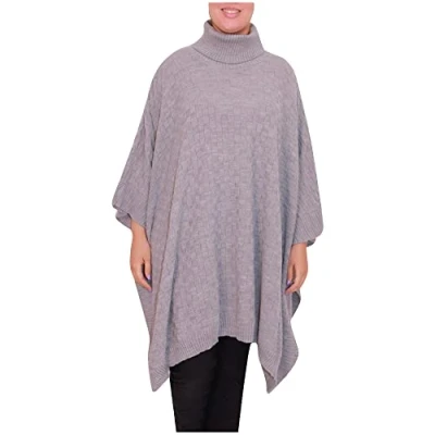 Storm Island® Women Poncho Ladies Cowl Neck Knitted Cape Shawl Scarf Wrap Self Design for Winter Pull Over One Plus Size UK 14 30 Grey
