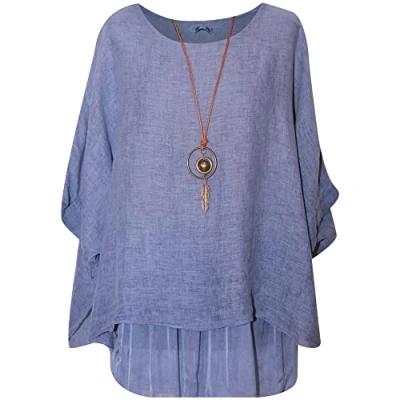 Storm Island Women Top Ladies 2 Layer Plus Size Italian Linen Trendy Casual Wear Quarter Sleeves Shirts 12 22 UK (One fit for UK, Denim)