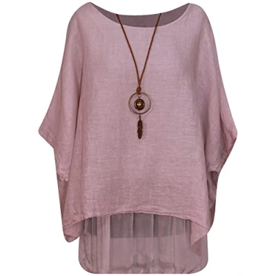 Storm Island Women Top Ladies 2 Layer Plus Size Italian Linen Trendy Casual Wear Quarter Sleeves Shirts 12 22 UK (One fit for UK, Dusty Pink)