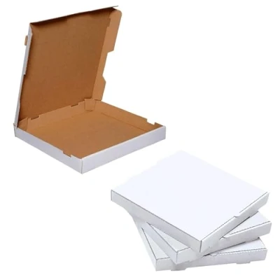 PIZZA BOXES: These classic takeaway pizza boxes are perfect for delivering the nation’s favourite fast food from your kitchen into the laps of eagerly-awaiting customers. Made from kraft paper, these plain pizza boxes harness their flute corrugation to provide a sturdy container for protecting food during deliveries. Designed to keep pizzas extra fresh and warm, the pizza box includes ventilation holes to let enough air pass through and avoid any sogginess caused by condensation. FLAT PACKED: Arriving flat packed to conserve space and provide easy storage, our pizza boxes are ideal for restaurants, takeaway businesses and catered events especially where space may be an issue. Featuring a push-and-tuck design, these boxes are incredibly easy to assemble and can be put together within seconds while your pizzas bake. MULTI USE BOX: These pizza packaging boxes are not entirely limited to containing pizza’s either, the smaller sizes can be used to package garlic breads, quesadillas, and even flat desserts like crepes and waffles. Pizza boxes are perfect for restaurants, takeaways and other food related businesses. Extremely lightweight and can be carried from one place to another with ease. STRONG CARDBOARD STRUCTURE: The corrugated paper structure is key to protecting the contents of the box from the knocks and bumps that are unavoidable when delivering or transporting takeaway meals. The hinged lid aids this end through telescopically fitting into the base to minimise movement within the box. Moreover, the sturdy corrugated kraft material acts as an insulator to help keep heat in alongside preventing grease or moisture from seeping out. SIZES: You can choose the colour of the box required, we have both brown and white. We have a full range of sizes: 7", 9", 10", 12", 14" & 16". Make your selection from the menu above.