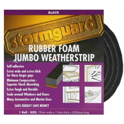 StormGuard 05SR6843053BL 3.05m Rubber Foam Jumbo Draught Excluder Weather Strip Seal Black