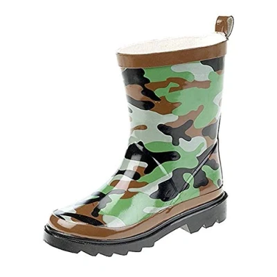 WATER RESISTANT PROTECTION: Keeps little feet dry and comfortable during outdoor play with its reliable water-resistant construction. CAMOUFLAGE PRINT DESIGN: Features an exciting camouflage pattern, perfect for adventurous children exploring the outdoors in style. DESIGNED FOR CHILDREN: Specifically crafted as wellingtons for kids, ensuring a comfortable and appropriate fit for young adventurers. ROBUST RUBBER CONSTRUCTION: Constructed with a durable rubber sole and upper, providing resilient wear for active outdoor expeditions. COMFORTABLE TEXTILE LINING: Features a soft textile lining, adding an extra layer of comfort for extended periods of wear and play.