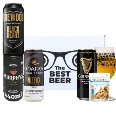 Amazon🍺 A Stout Beer “Best Beer” Gift Set featuring 4 rich and flavourful stouts, a Beerhunter tasting glass, and Mr Filberts snacks — the perfect gift for dark beer lovers. 🎁 Expertly curated selection of smooth, roasted, and chocolatey stouts from top breweries, celebrating the bold character and depth of craft stout brewing. 🌿 Each beer offers a unique tasting experience with notes of coffee, cocoa, and caramel — perfectly balanced with creamy textures and roasted malt aromas. 🍻 Includes a branded Beerhunter glass for the perfect pour and Mr Filberts gourmet snacks to complement each sip, creating a complete tasting experience. 🎀 Beautifully presented in a “Best Beer” gift box, this set makes the ideal present for stout enthusiasts, birthdays, Father’s Day, or festive celebrations.