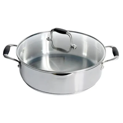 The Stoven Soft Touch Induction 28cm Sauteuse is a perfect addition to any kitchen. Its versatility alone makes this a great value item of cookware. Equally at home in the oven as it is on the hob, this 28cm sauteuse from Stoven has a 3 litre capacity and is ideal for frying, searing, sauteing and simmering. Perfect for pasta dishes, casseroles and stews, the lid also allows for braising and slow roasting. Two riveted side handles allows the Stoven Sauteuse to be easily moved from hob to oven, even when full.Stainless steel cookware is a popular and cost effective choice as it provides durability and consistent results whilst being hard wearing and easy to clean. This Stoven Soft Touch Induction 28cm Sauteuse is constructed from high grade stainless steel with an encapsulated base whilst the two riveted stainless steel side handles feature silicone sleeves for safe handling. Suitable for all hob types including induction, Stoven Soft Touch Induction Cookware is also oven safe up to 180°C.For easy draining and pouring the Stoven Soft Touch Induction 28cm Sauteuse has two pouring spouts (great for left or right handed use) and a glass strainer lid.Stoven Soft Touch Induction Cookware is dishwasher safe although we recommend hand washing for longevity.This Stoven Soft Touch Induction 28cm Sauteuse is covered by a Stoven lifetime guarantee.Capacity: 3LDimensions: 13.8(H) x 28(W) x 34.9(L) cm.Weight: 3.12kg.