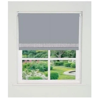 Straight Diamante Edge Border Dimout Roller Blind (165cm Drop) 60cm Light Grey
