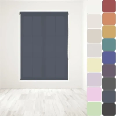 Straight Edge Dim Out Roller Blind Easy Fit Home Office 210cm Width x 160cm Drop Navy