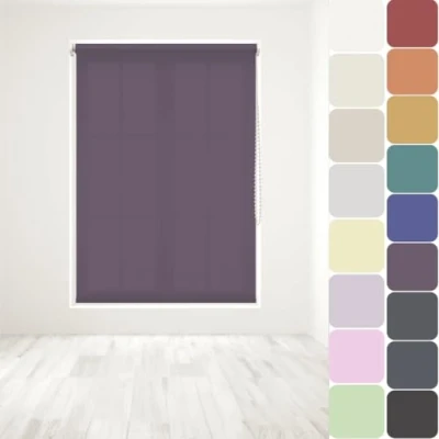 Straight Edge Dim Out Roller Blind Easy Fit Home Office 60cm Width x 160cm Drop Aubergine