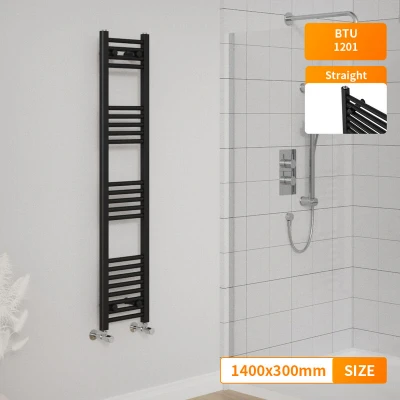 Straight Heated Towel Rail Bathroom Ladder Radiator 1400 x 300mm Black