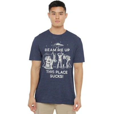 Stranger Things Beam Me Up Unisex T Shirt, Navy, Medium