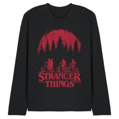 Stranger Things UNISEX LONG SLEEVE T-SHIRT FOR MEN & WOMEN: Crafted from premium ringspun cotton, our long sleeve T-shirts are the epitome of timeless style. Embrace your individuality with a look as distinct as you are. Created for everyday wear, our long sleevetees feature a breathable all-season mid-weight weave, ensuring comfort in a versatile tagless design. Beyond ordinary, this long-sleeve tee is built to last. VERSATILE FIT: Whether you're an icon, influencer, or a myth in the making, discover a facet for every version of yourself. Pre-shrunk for the perfect fit, our long sleeve tees are meant to be worn daily. With a crew neckline, long sleeves, regular silhouette, and straight hemline, this top is designed for comfort. Casual and classic, it's the ideal choice for any occasion. Only good vibes here. OFFICIALLY LICENSED - Discover exeptional style with our officially licensed pop culture designs! Created by our in-house graphic art team, each piece is a proud representation of craftsmanship, meticulously designed and printed in the UK. Showcase your favorite characters and themes, making every wear a statement of your unique style! EFFORTLESS CARE: From school and work to hanging out with mates, our classic tee is tailored for the real world. No complicated care instructions – simply wear, wash, repeat. Launder cold and tumble or hang dry to maintain the longevity of your new favourite shirt. PERFECT GIFTING OPTION: Ideal for sharing the love, our thoughtfully crafted and vividly rendered long sleeve T-shirts are perfect for any superfan. Kit your loved ones out for their next birthday, holiday, themed event, Christmas or special occasion.