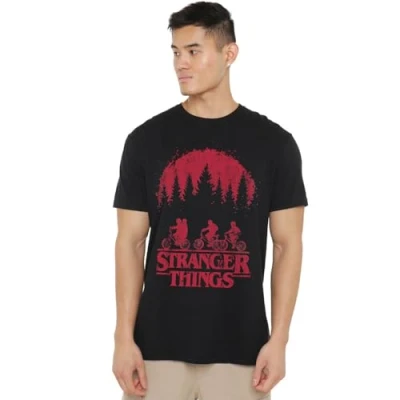 Stranger Things UNISEX T-SHIRT FOR MEN & WOMEN: Crafted from premium ringspun cotton, our T-shirts are the epitome of timeless style. Embrace your individuality with a look as distinct as you are. Created for everyday wear, our tees feature a breathable all-season mid-weight weave, ensuring comfort in a versatile tagless design. Beyond ordinary, our short-sleeve tee is built to last. VERSATILE FIT: Whether you're an icon, influencer, or a myth in the making, discover a facet for every version of yourself. Pre-shrunk for the perfect fit, our tees are meant to be worn daily. With a crew neckline, short sleeves, regular silhouette, and straight hemline, this top is designed for comfort. Casual and classic, it's the ideal choice for any occasion. Only good vibes here. OFFICIALLY LICENSED - Discover exeptional style with our officially licensed pop culture designs! Created by our in-house graphic art team, each piece is a proud representation of craftsmanship, meticulously designed and printed in the UK. Showcase your favorite characters and themes, making every wear a statement of your unique style! EFFORTLESS CARE: From school and work to hanging out with mates, our classic tee is tailored for the real world. No complicated care instructions – simply wear, wash, repeat. Launder cold and tumble or hang dry to maintain the longevity of your new favourite shirt. PERFECT GIFTING OPTION: Ideal for sharing the love, our thoughtfully crafted and vividly rendered T-shirts are perfect for any superfan. Kit your loved ones out for their next birthday, holiday, themed event, Christmas or special occasion.