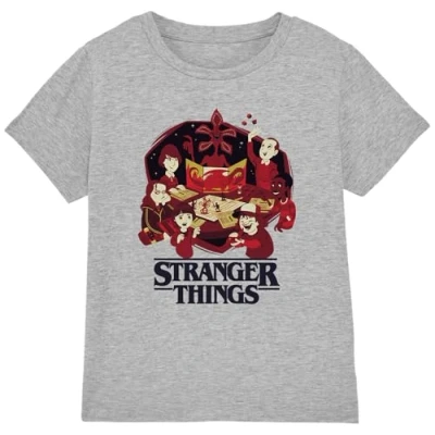 STRANGER THINGS KIDS T SHIRT: Crafted from premium ringspun cotton, our T-shirts are the epitome of timeless style; express your child's authenticity with a look as unique as they are; designed for daily wear, our t shirt boasts a breathable all-season mid weight weave in a versatile tagless tee that can be worn fitted or oversize and is constructed for kids ages 3 through 13; beyond basic, our kids top is made to go the distance FIT FOR EVERY SOUL: Junior influencer, or mini myth-in-the-making; find a facet for every version of them; pre-shrunk for an optimal fit, our fade-resistant shirt was born to be worn; crafted for comfort with a ribbed crew neckline, regular silhouette, and straight hemline, this officially licensed tee is made to be lived in; casual and classic, it's the optimal topper for even the fussiest dresser; only good vibes here OFFICIALLY LICENSED: Discover exeptional style with our officially licensed pop culture designs; created by our in-house graphic art team, each piece is a proud representation of craftsmanship, meticulously designed and printed in the UK; showcase your favorite characters and themes, making every wear a statement of your unique style EFFORTLESS CARE: School, park, playground ̶ our kid-approved shirt was designed for the real world; no fussy instructions here; wear, wash, repeat; launder cold and tumble or hang dry to keep their new favourite shirt looking better longer GREAT GIFTING OPTION: great for sharing the love, our thoughtfully crafted and vividly rendered T-shirts are great for any superfan; kit your loved ones out for their next birthday, holiday, themed event, Christmas or special occasion