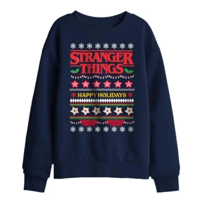 STRANGER THINGS - SEASON FOUR KIDS BOYS/GIRLS SWEATSHIRT: A great fit for boys and girls alike, this unisex sweatshirt is perfect for everyday adventures — a fun and comfy way for kids to show off their favourite characters. RESISTS SHRINKING & FADING: Designed for daily wear, this easy-to-layer pullover features ribbed cuffs and hem, a roomy kangaroo pocket, and a relaxed fit. Made from medium-weight fabric to keep them comfy all day long. EASY CARE: Keep their favourite hoodie looking its best – machine wash cold and tumble dry on a low heat to maintain softness and colour vibrancy. OFFICIALLY LICENSED: All our designs are officially licensed. Created by our in-house graphic art team, each piece is a proud representation of craftsmanship, meticulously designed and printed in the UK. Showcase your favorite characters and themes, making every wear a statement of your unique style! A BRILLIANT GIFT IDEA Whether it's for birthdays, holidays, or just because – this hoodie makes a fantastic gift for any young fan. Ideal for school, weekends, or relaxing at home.